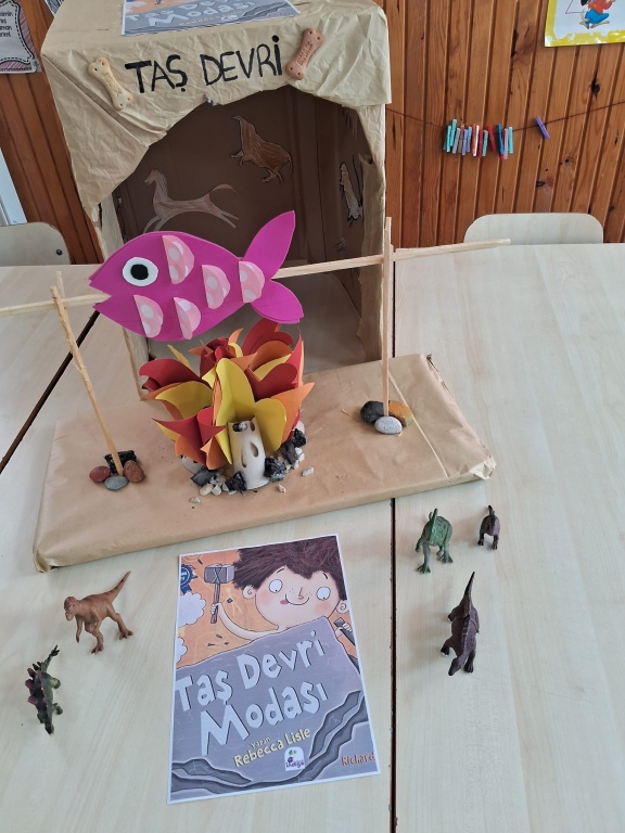 maddeleri gereği; Tüm sınıflarımızda kütüphanelerinden kendi belirledikleri birer kitap seçmişlerdir. Seçilen kitaplarla hikaye tamamlama çalışmaları yapılmiştır. Seçilen kitaplara yönelik hikaye kartı çalışmaları yapılmiştır. Seçilen kitaplarla ilgili sınıflarımız arası afiş yarışması yapılmıştır. Ayrıca 4 yaş A şubesi okudukları hikaye kitabı olan Taş Devri’ni Drama etkinlikleriyle oyunlaştırmış, çeşitli öykünmelerle desteklemiştir.